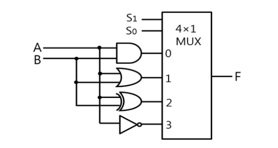 - 멀티플렉서와 디코더를 이용해서 구성할 수 있다.