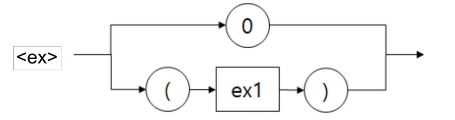 <ex> ::= 0 | ( ex1 )<ex> ::= 0 | ( <ex1> )<ex> ::= <0> | (ex1)<ex> ::= 0 | '(' <ex1> ')'
