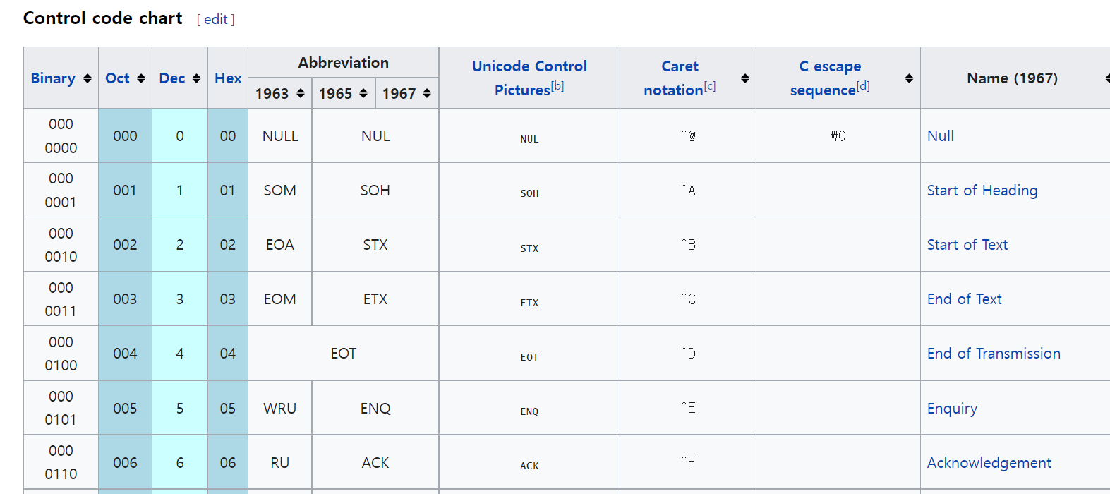 ASCII 코드에서 특정 기능을 하는 Character이기 때문이다.