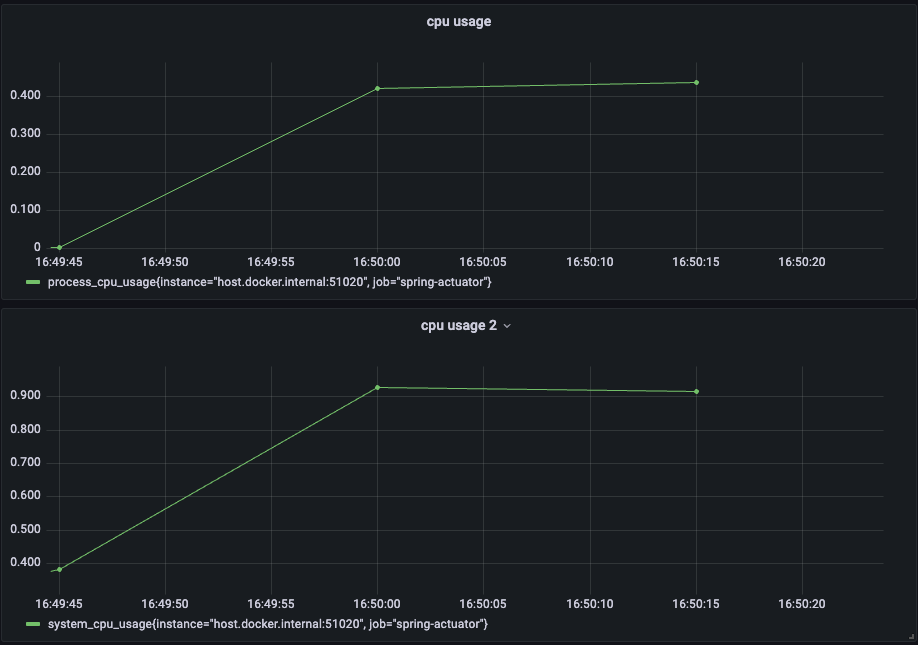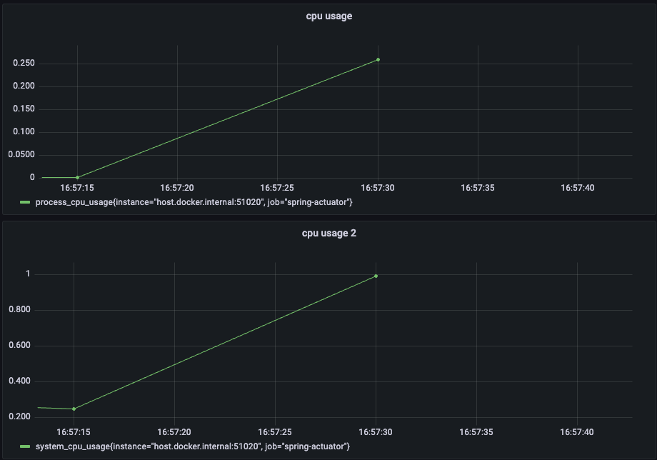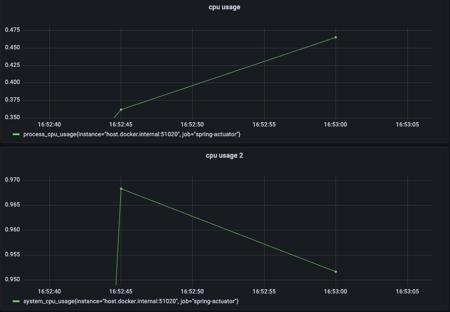 테스트 도구는 JMeter를 활용했다. Gatling이 기능이 더 많고 리포트 ui도 좋아서 사용하려고 했는데 Webflux 구현을 스프링부트 3.대와 jdk 17을 사용하였더니 지원을 하지 않아서 JMeter로 했다. Cpu 수치에 대해서는 Spring actuator에서 제공해주는 메트릭을 Prometheus와 Grafana를 이용해 모니터링했다.
