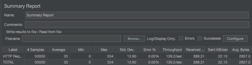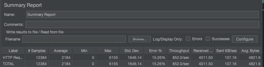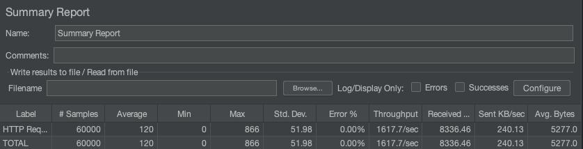 JMeter의 성능이 테스트 조건을 따라오지 못하는 듯 한다. MVC의 경우 유저를 4,000명 이상 올렸을 때 루프 수를 2 이상 올리면 어느 시점에서 요청을 더 이상 보내지 못하는 상황이 발생했는데, MVC의 반응속도 문제도 있겠지만 이를 처리하는 JMeter에도 부하가 걸리는 듯 했다.