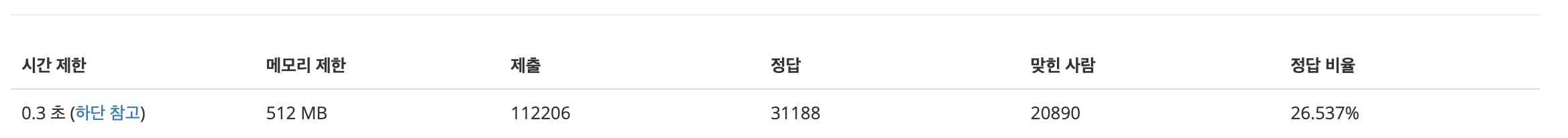 시간 제한이 0.3초이기 때문에 타이트한 시간 제한을 맞출려면 연산 부분에서 상수 시간이 필요하다.