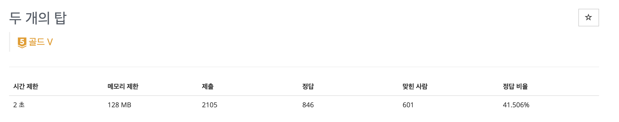 백준 2118 두 개의 탑 (JAVA 자바 풀이)