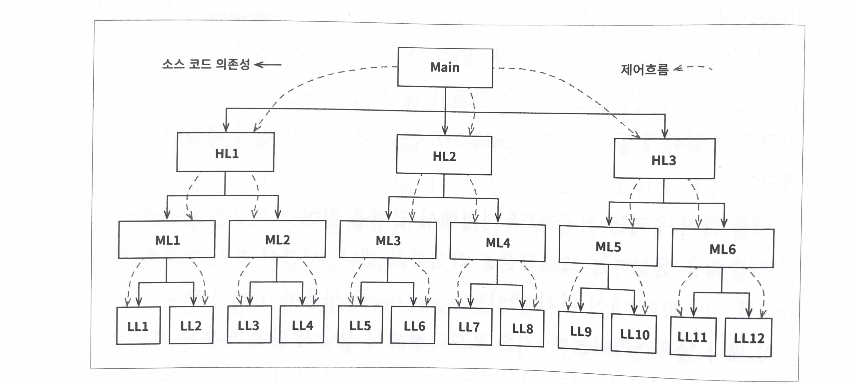 이는 잘못된 아키텍처다. 고수준인 encrpt 함수가 저수준인 readChar()와 writeChart 함수에 의존하기 때문이다.