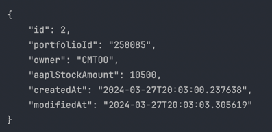 - 포트폴리오 엔티티에서는 애플 주식만을 담는 것으로 가정하여