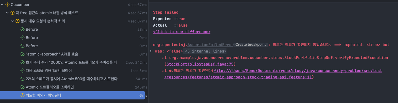 assertTrue(buyOrderResponses.stream().anyMatch(response -> response.statusCode() != 200), "의도한 예외가 확인되지 않았습니다.");
