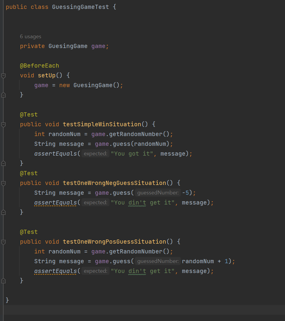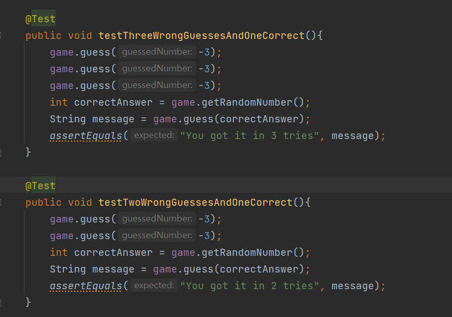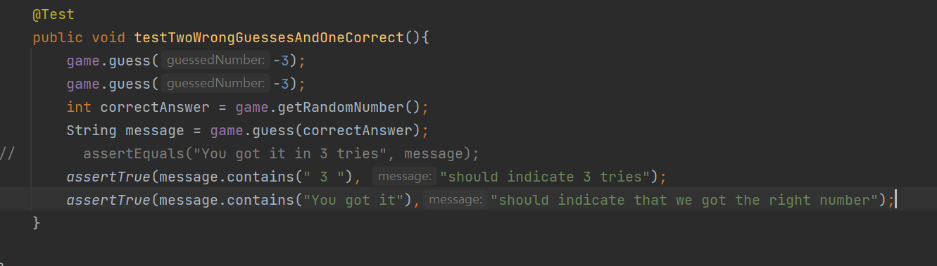 With another methods put in, it would force us to do something more involved, without previously working test, which makes us to modify it as actual ways.