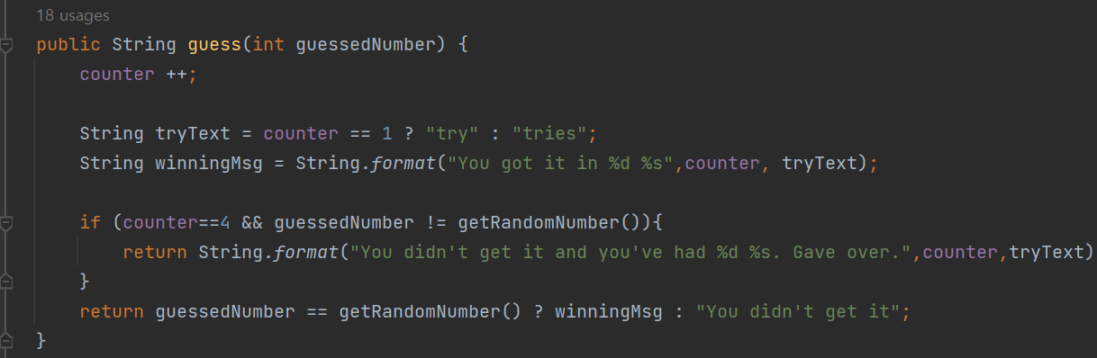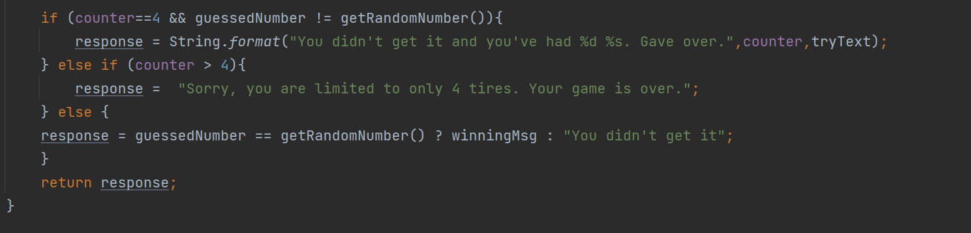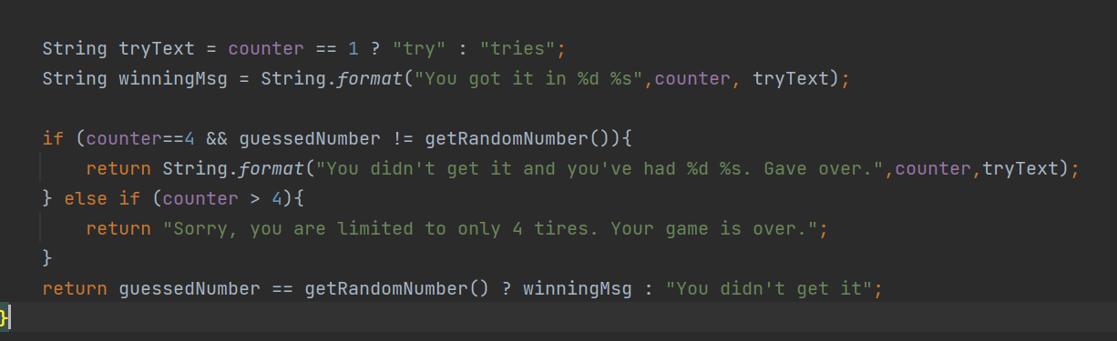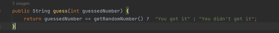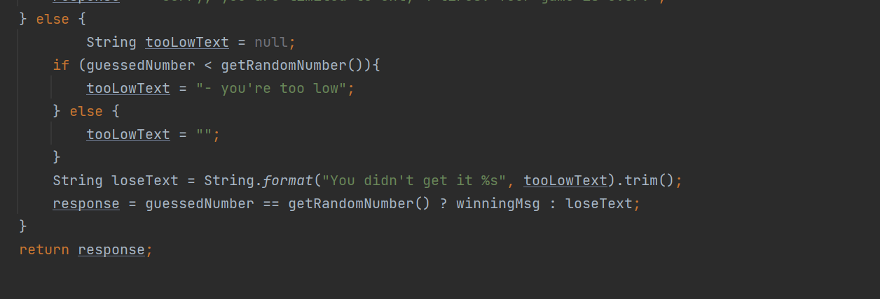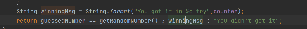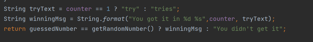 response = guessedNumber == getRandomNumber() ? winningMsg : "You didn't get it";