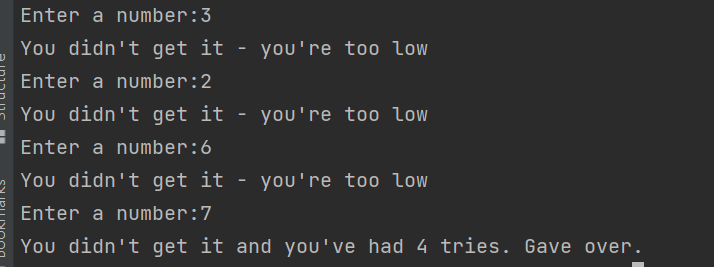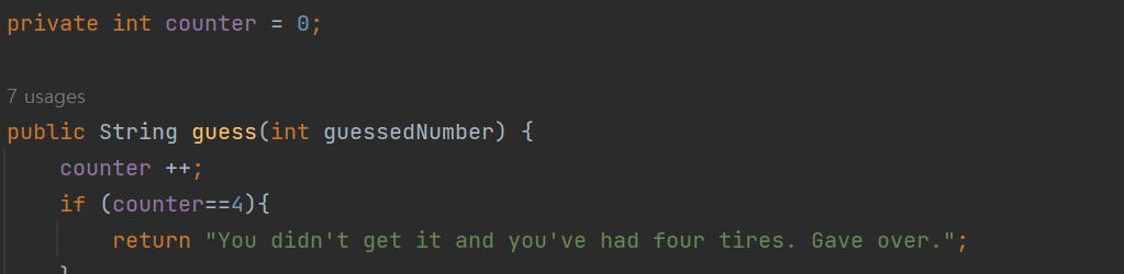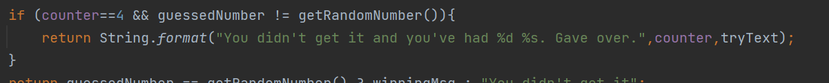 if (counter==4 && guessedNumber != getRandomNumber()){