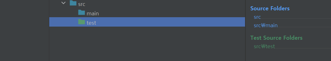test 폴더를 선택하고 Test 선택 => 테스트 폴더로 지정