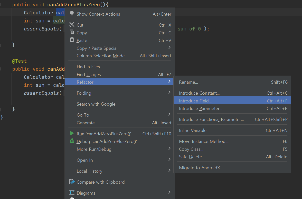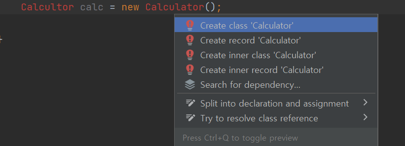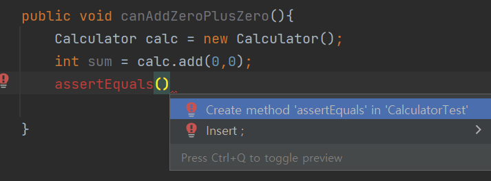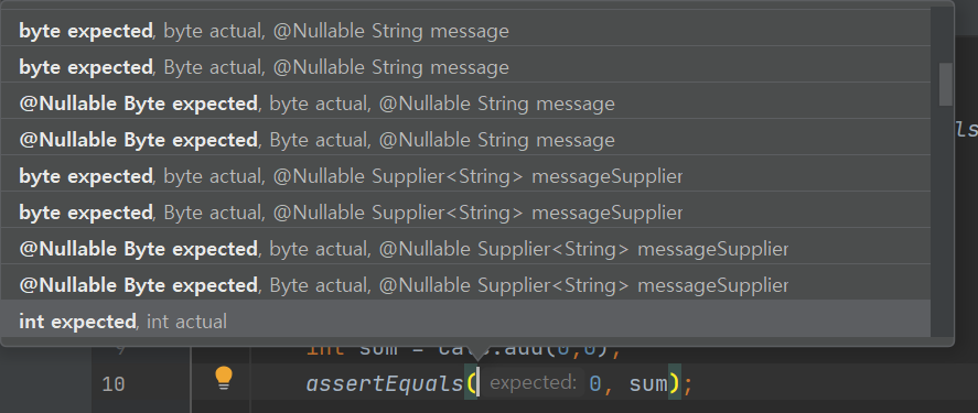 Test로 돌아와서 sum 변수를 만들고 add에 따른 return을 받는다고 해보자.