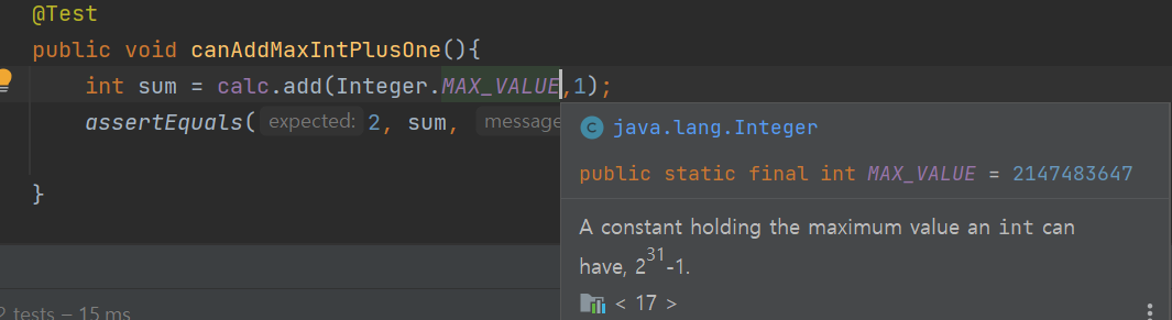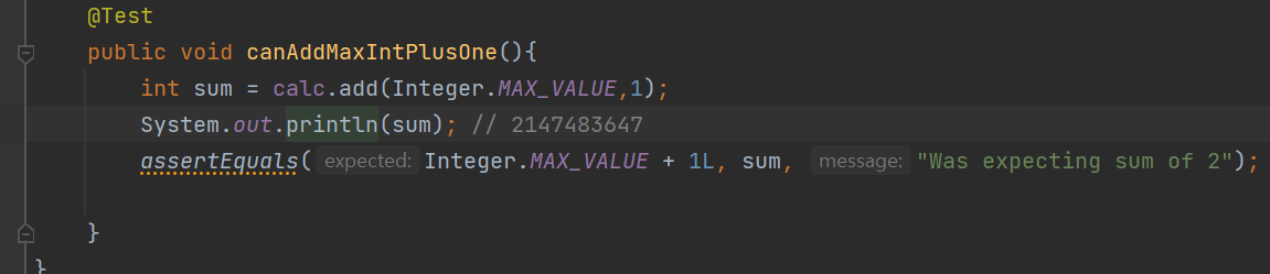 int sum = calc.add(Integer.MAX_VALUE,1);