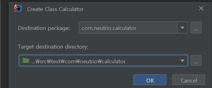 테스트 폴더에 junit 패키지와 클래스 만들기
