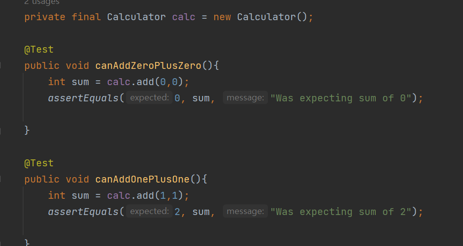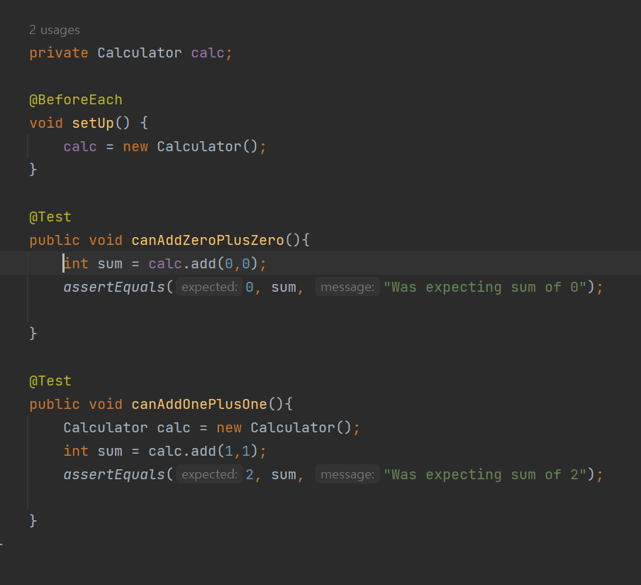 => then it would run this test method and ust that newly instantiated calculator which is stored in the variable