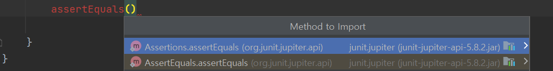 Assertions.assertEquals() 같은 방식으로 method 주소를 다 기입할 수도 있지만
