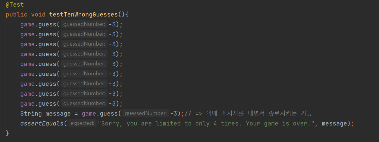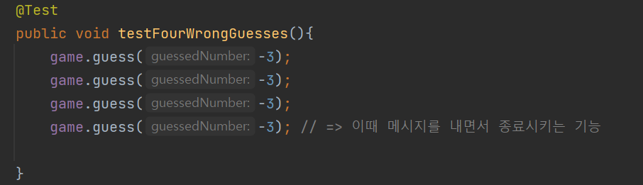 4번의 guess 이후 종료시키는 기능을 테스트부터 구현해보자.