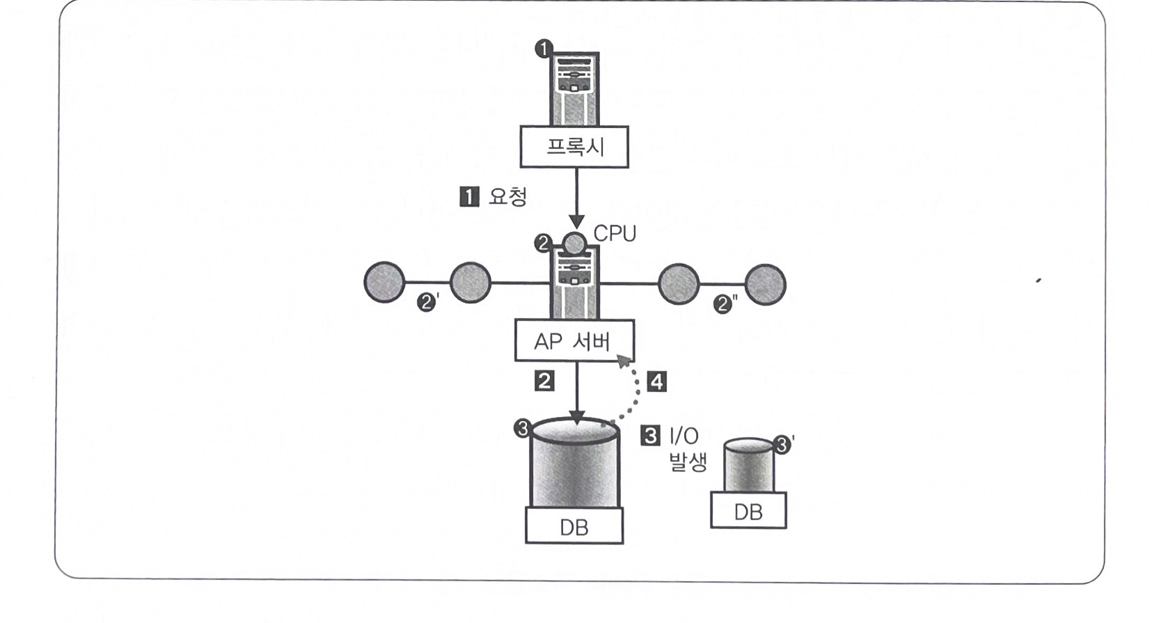 웹 애플리케이션과 부하의 관계를 그림으로 살펴보자. 웹 애플리케이션의 3단 구조에는 프록시, AP 서버, DB가 있다.