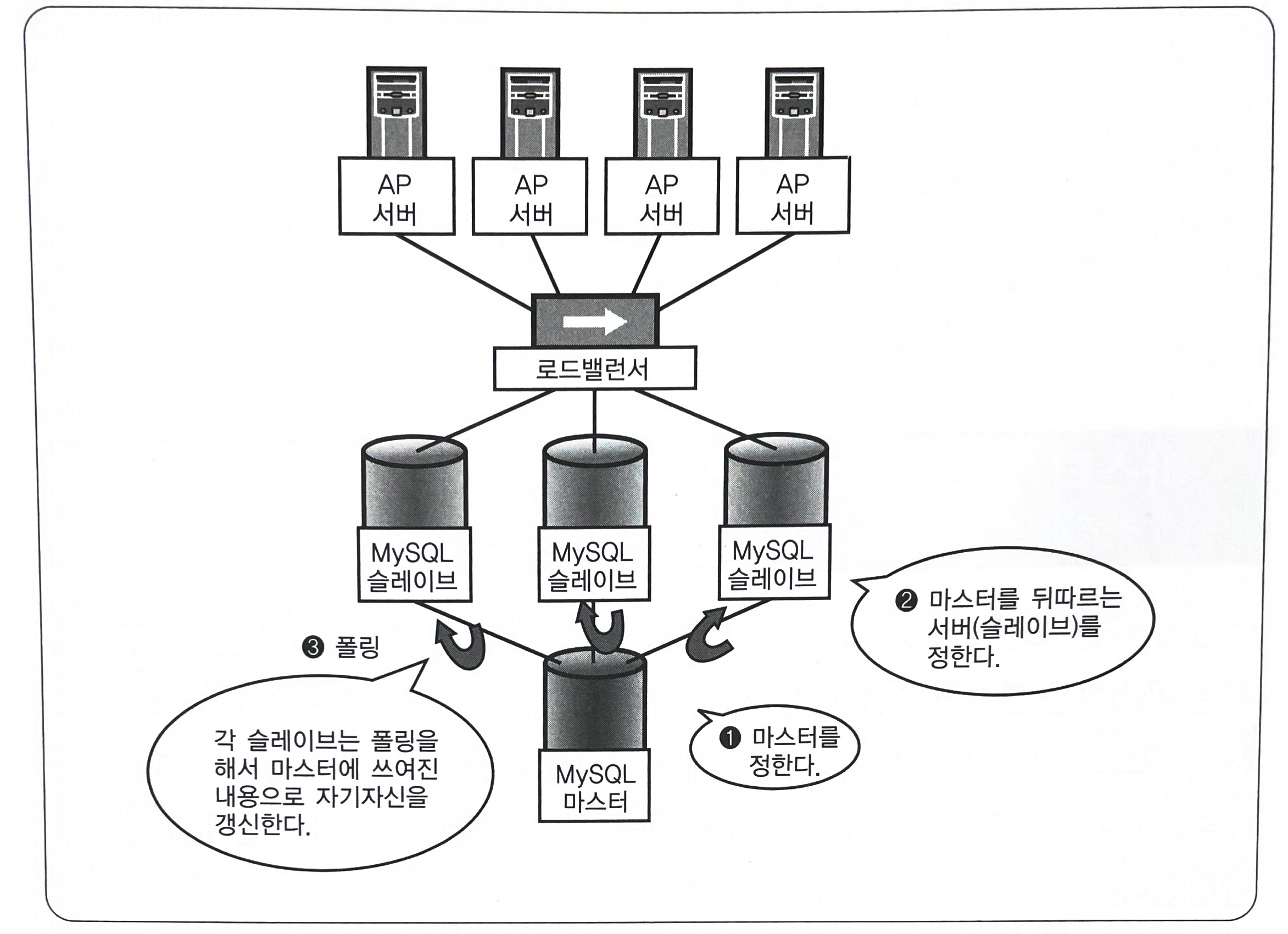 한편, 마스터는 확장할 수 없다. 반드시 할 수 없는 것은 아니지만, 갱신계열 쿼리가 늘어나면 상당히 험난해진다. 그렇지만 이 부분에서는 웹 애플리케이션의 특성이 있는데, 웹 애플리케이션에서는 대략 90% 이상이 참조계열 쿼리다. 쓰기는 상대적으로 훨씬 적다.