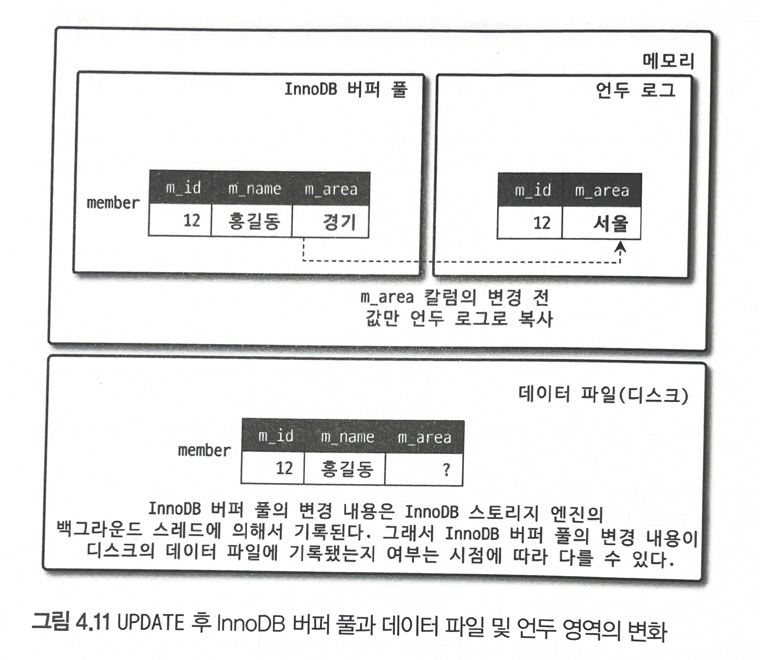 그림 4.11은 MEMBER 테이블에 UPDATE 문장이 실행될 때의 처리 절차를 그림으로 보여준다.