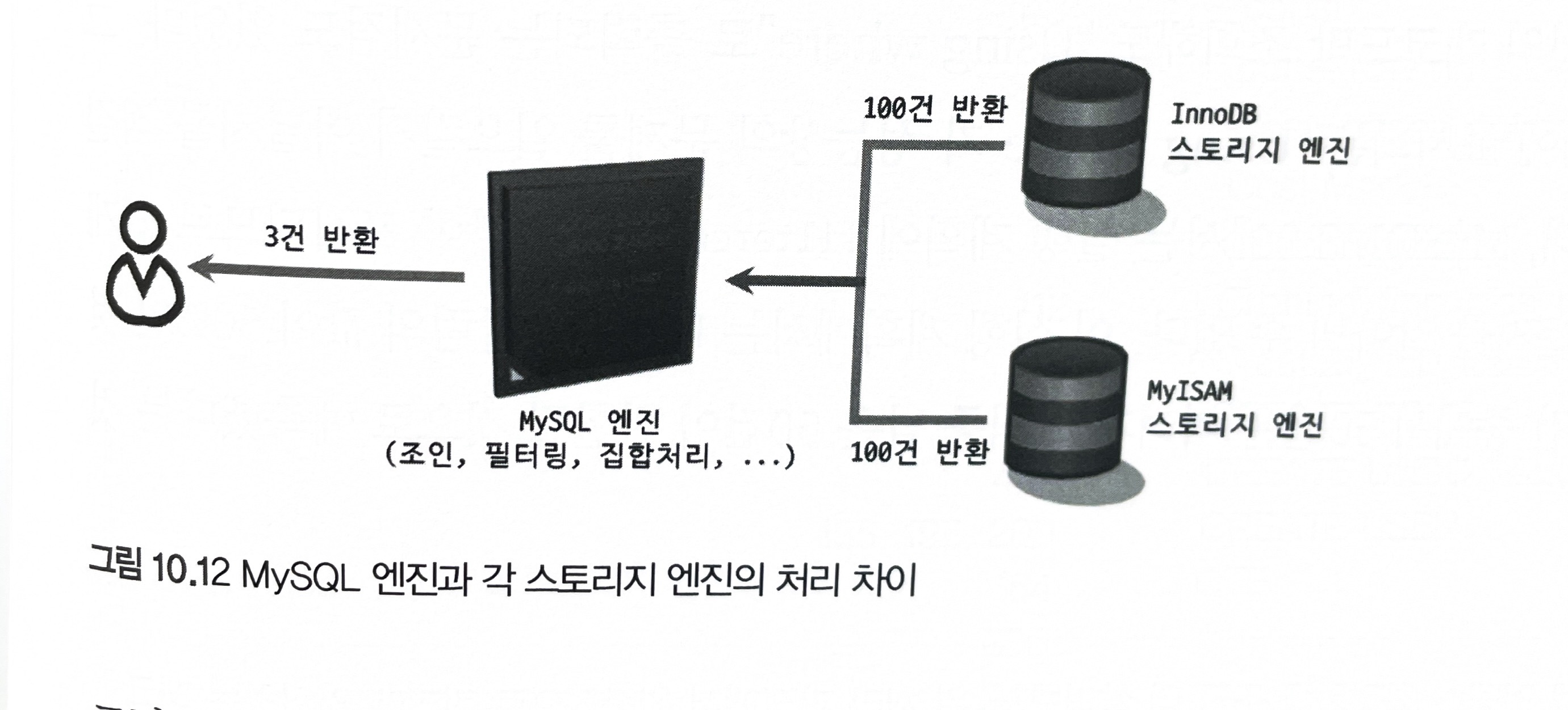 그림 10.12와 같이 각 스토리지 엔진에서 전체 200건의 레코드를 읽었는데, MySQL 엔진에서 별도의 필터링이나 가공 없이 그 데이터를 그대로 클라이언트로 전달하면 "Using where"가 표시되지 않는다.