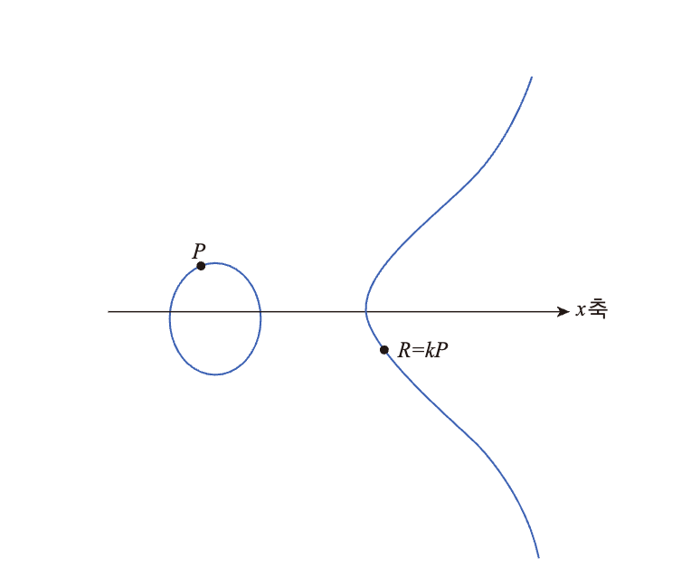 - ( kP ): 정수 ( k )에 의한 점 ( P )의 스칼라 곱셈을 의미한다. 이는 점 ( P )를 ( k )번 자신에게 더하는 것과 같다.