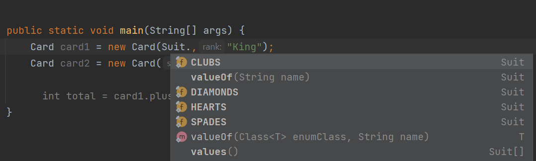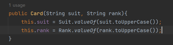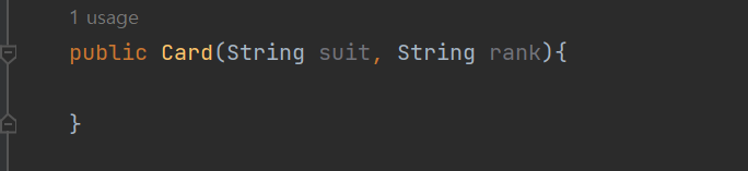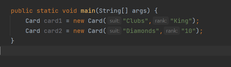 컨스트럭터를 생성했고 suit와 rank를 받도록 했기 때문에 input을 넣도록 요청받고 있다.