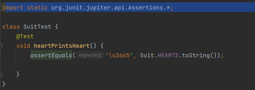 그런 후에 enum의 테스트 클래스를 만들어서 테스트를 구현해본다.