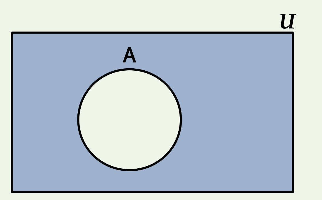 전체집합 U에 속하면서 A에 속하지 않는 원소의 집합을 A의 여집합이라고 한다.
