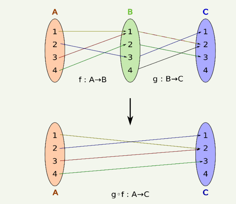 모든 \(x \in X\)에 대해, \((g \circ f)(x) \equiv g(f(x))\)이다.