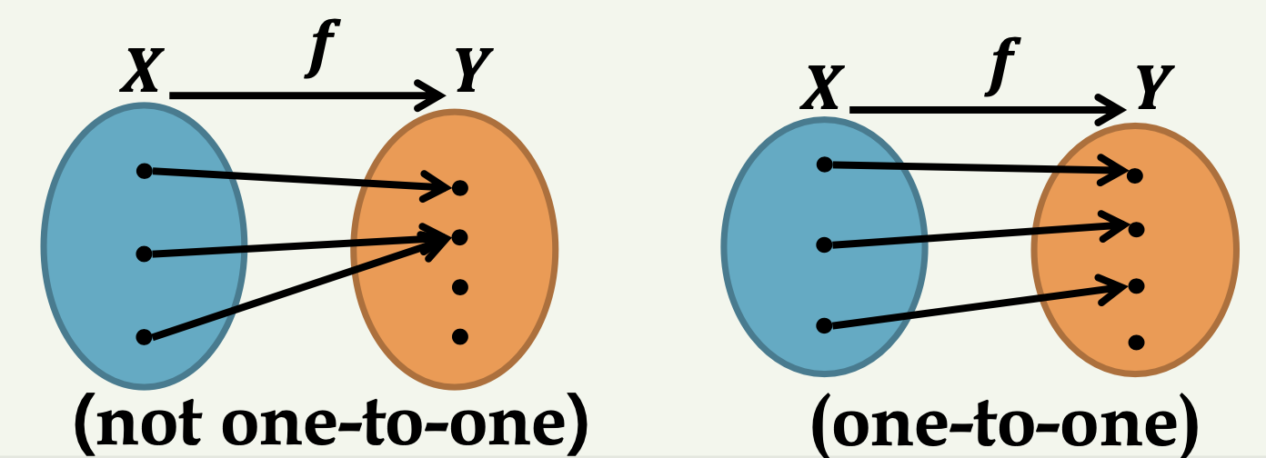 - 또한, 정의역 \( X \)의 서로 다른 원소가 공역 \( Y \)의 서로 다른 원소와 대응되므로 단사함수이다.