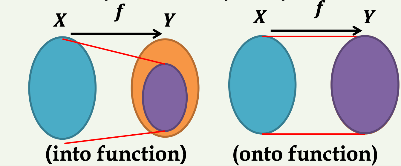 모든 𝒙가 𝑿에 속할 때, 유일한 𝒚가 𝒀에 속하여 𝒇(𝒙) = 𝒚가 성립한다. 이를 수식으로 나타내면 다음과 같다:
