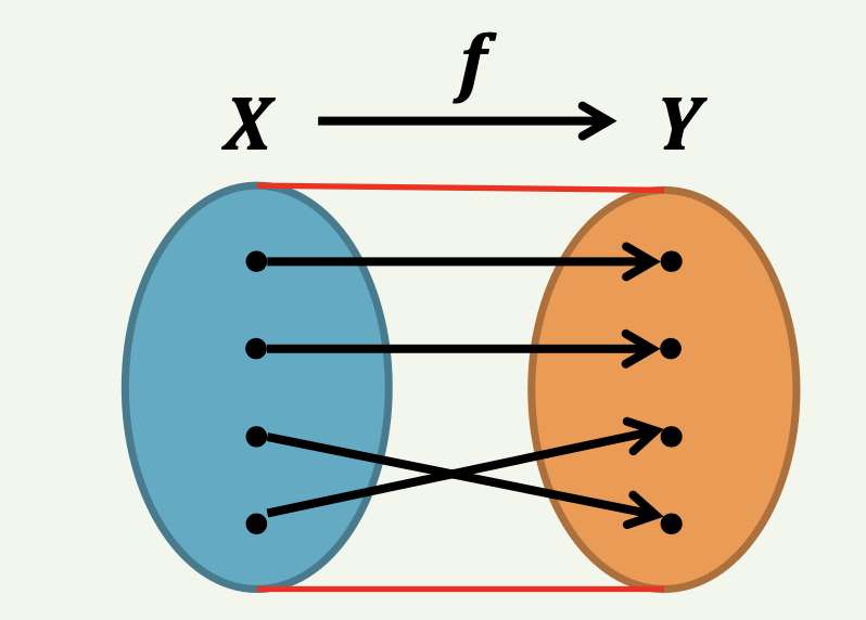 먼저, 𝑿와 𝒀는 각각 집합이다. 𝑿에서 𝒀로의 함수 𝒇는 다음과 같은 조건을 만족한다:
