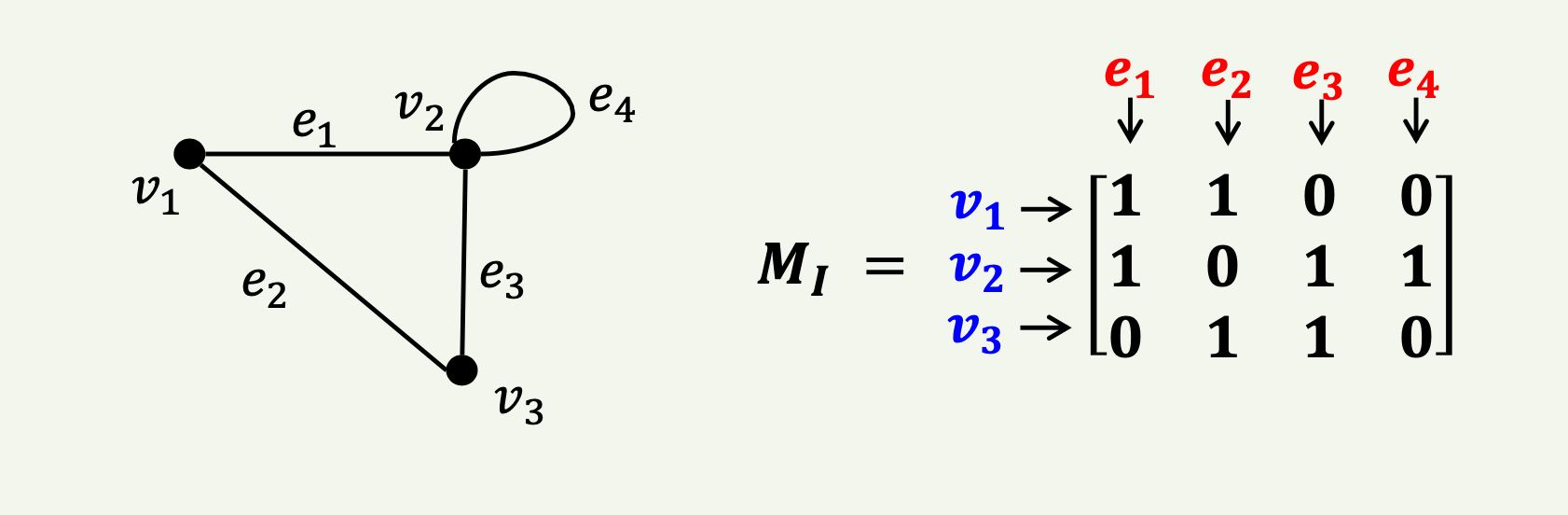 여기서, 발생행렬 \( M_I \)는 \(|V| \times |E|\) 크기의 부울 행렬이다.