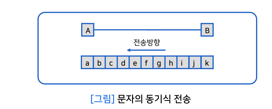 문자 동기화를 위해 각 문자의 시작과 끝을 표시하는 특별한 패턴을 사용한다. ASCII 코드의 경우 SYN 문자를 사용하여 동기를 맞추며, 이를 통해 송신된 메시지의 시작과 끝을 파악할 수 있다.