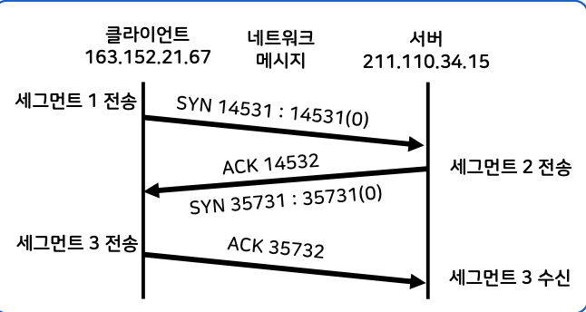 - 예시: SYN 35731: 35731(0), ACK 14532