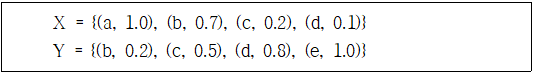 3) X∩Y = {(a, 1.0), (b, 0.2), (c, 0.2), (d, 0.1), (e, 1.0)}