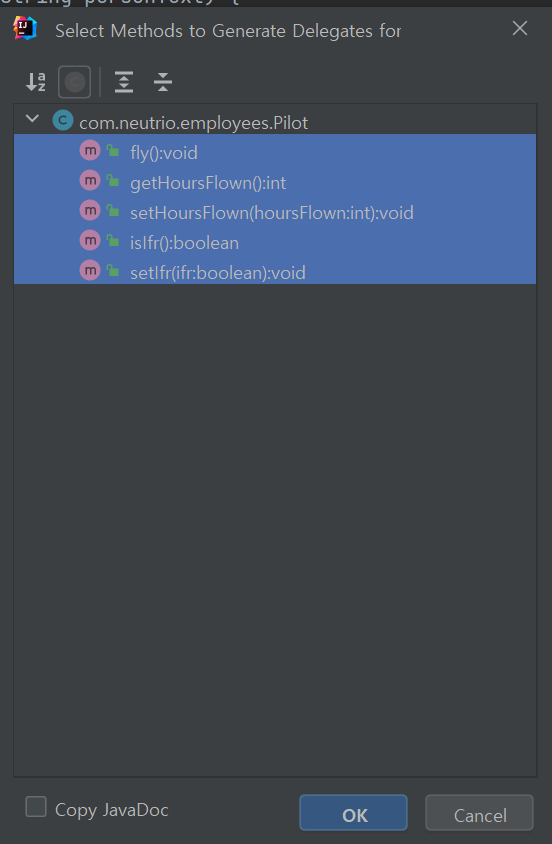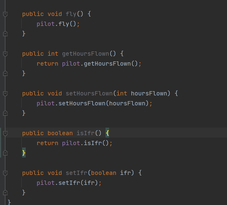 However, by doing so, so called delegate methods on the CEO and what those would be are methods that mirror the public methods of the pilot class, such taht CEO HAS those same method.