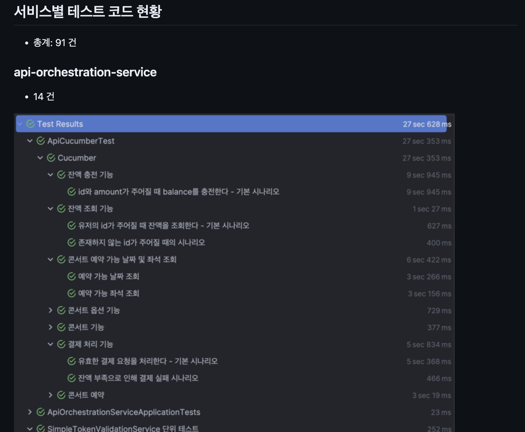 a. 회사에서 테스트 코드를 작성하는데 통합 테스트와 인수테스트가 100개 이상 넘어가면 돌아가는 시간이 오래 걸려서 고민입니다.