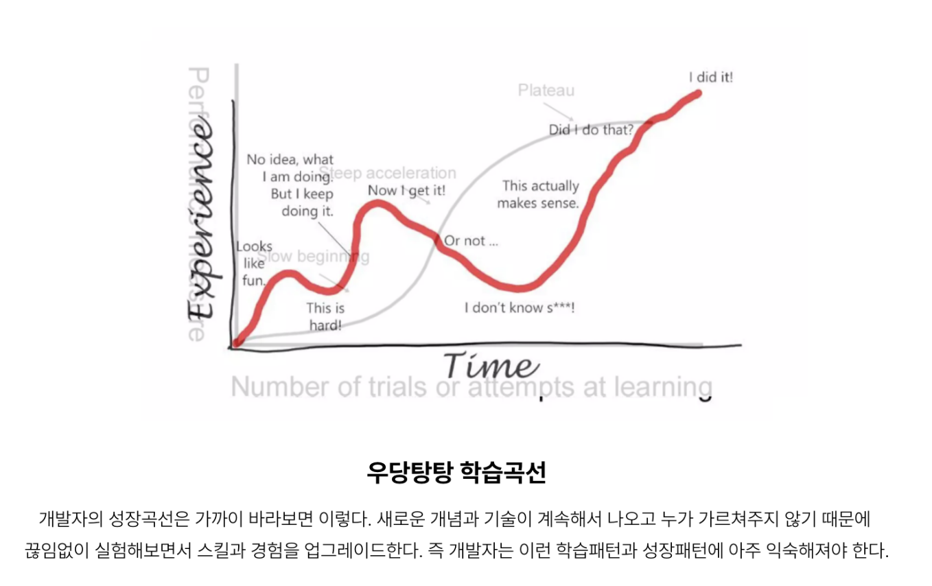 특히 개발자 성장 곡선은 다음과 같다고 한다.
