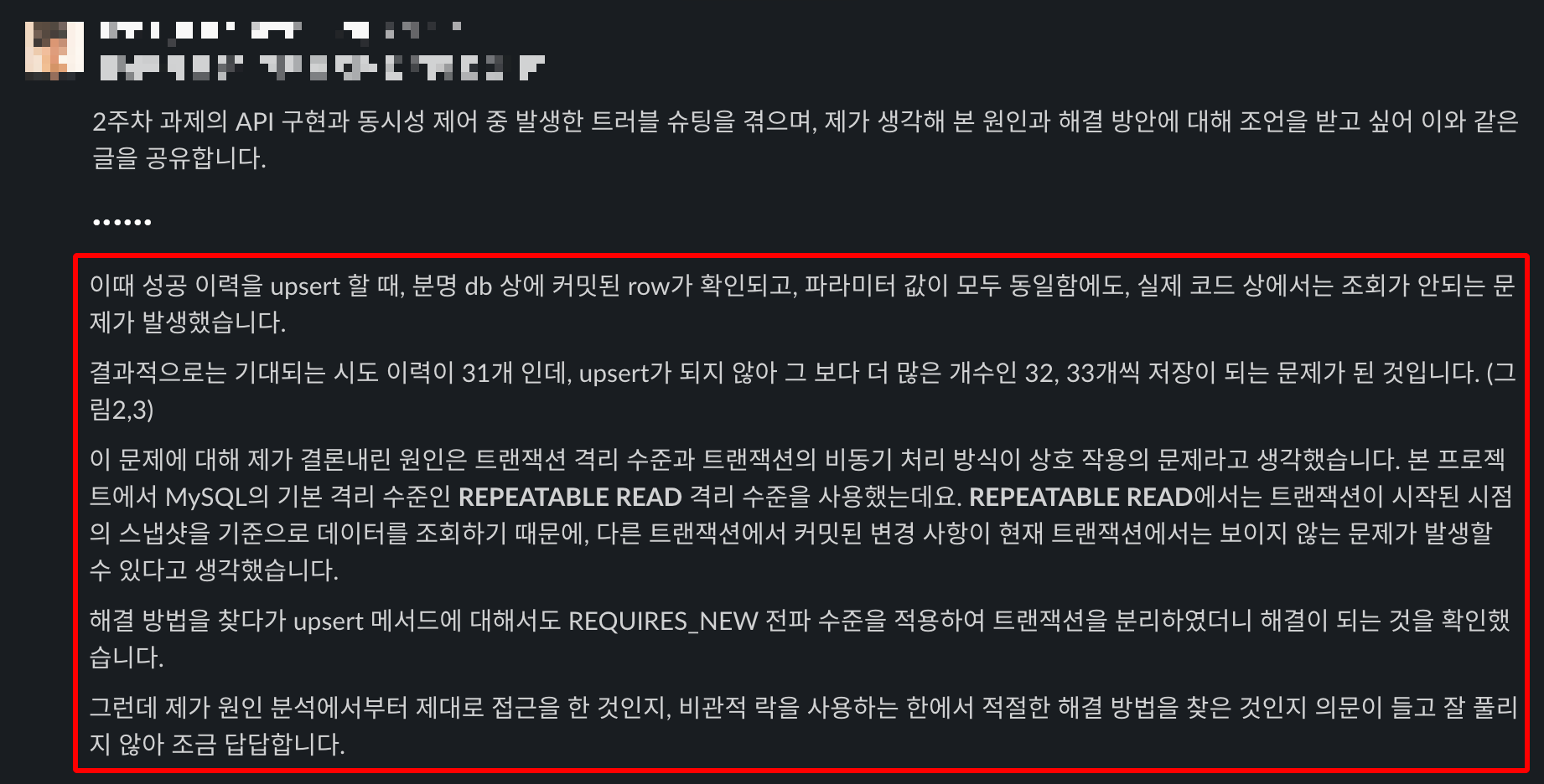 - 예를 들어, row lock이나 table lock을 통해 동시 실행을 방지할 수 있다.