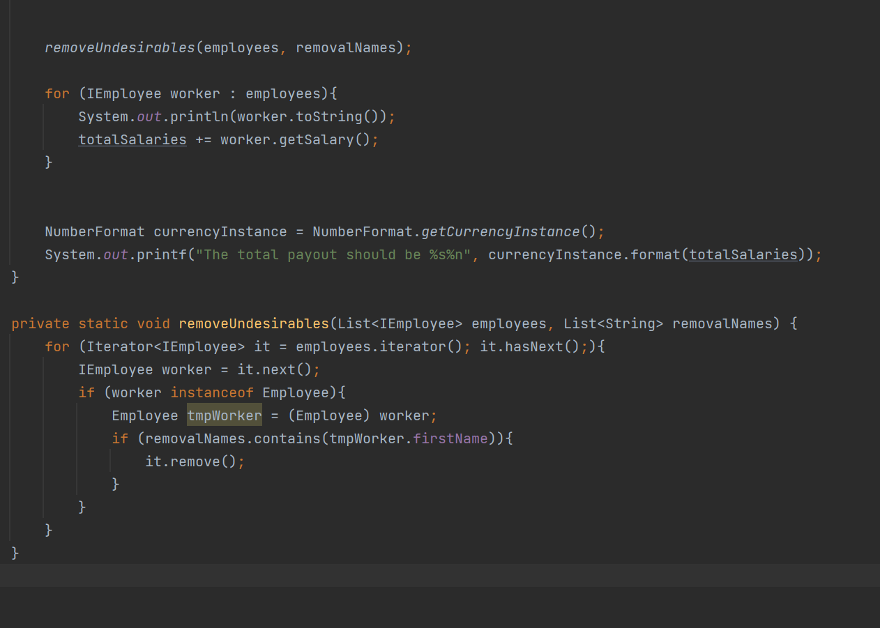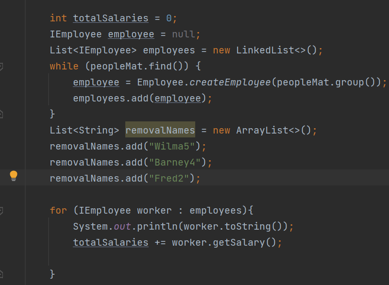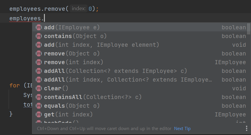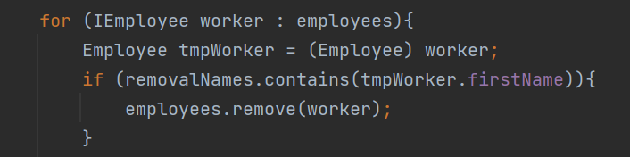 for (Iterator<IEmployee> it = employees.iterator(); it.hasNext();){