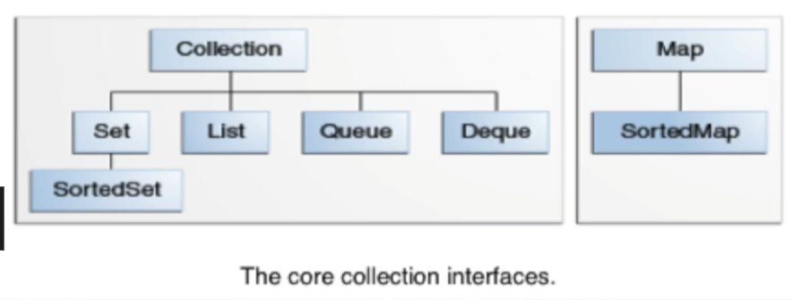 List, Set, Queue, Deque로 구분되고 별도로 Map이 존재한다.