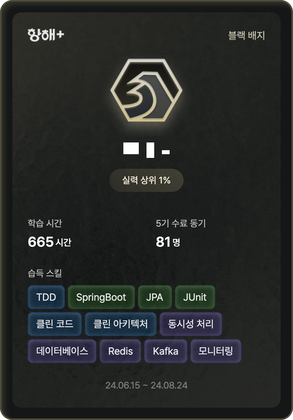 - 상위 1% 실력 인증 Black badge 획득 ❤️🔥