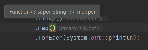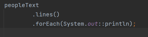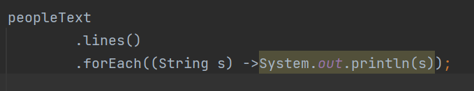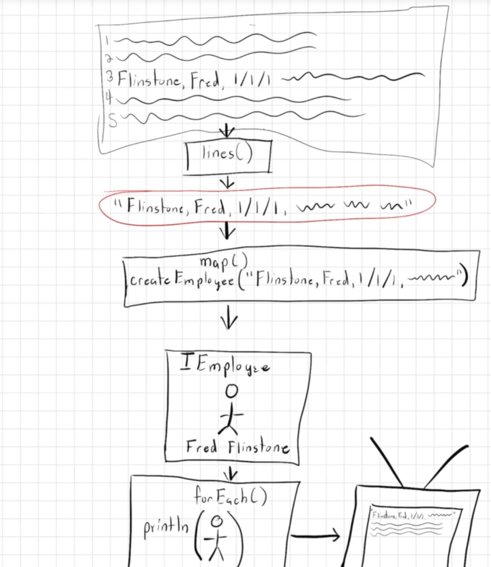 So It should take the individual strings one at a time from this streams of strings and pass them one at a time into a call to the print line method.