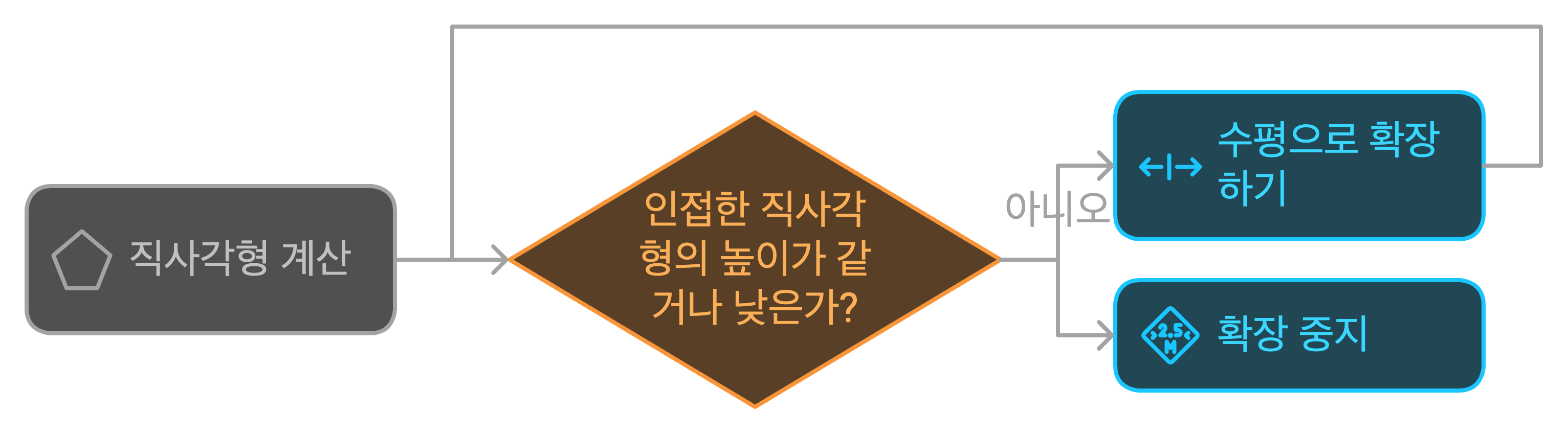 먼저 직사각형의 계산 메커니즘에 대해 생각해보자. 각 직사각형은 자신보다 낮거나 같은 높이의 직사각형이 나올 때까지 좌우로 확장할 수 있다.