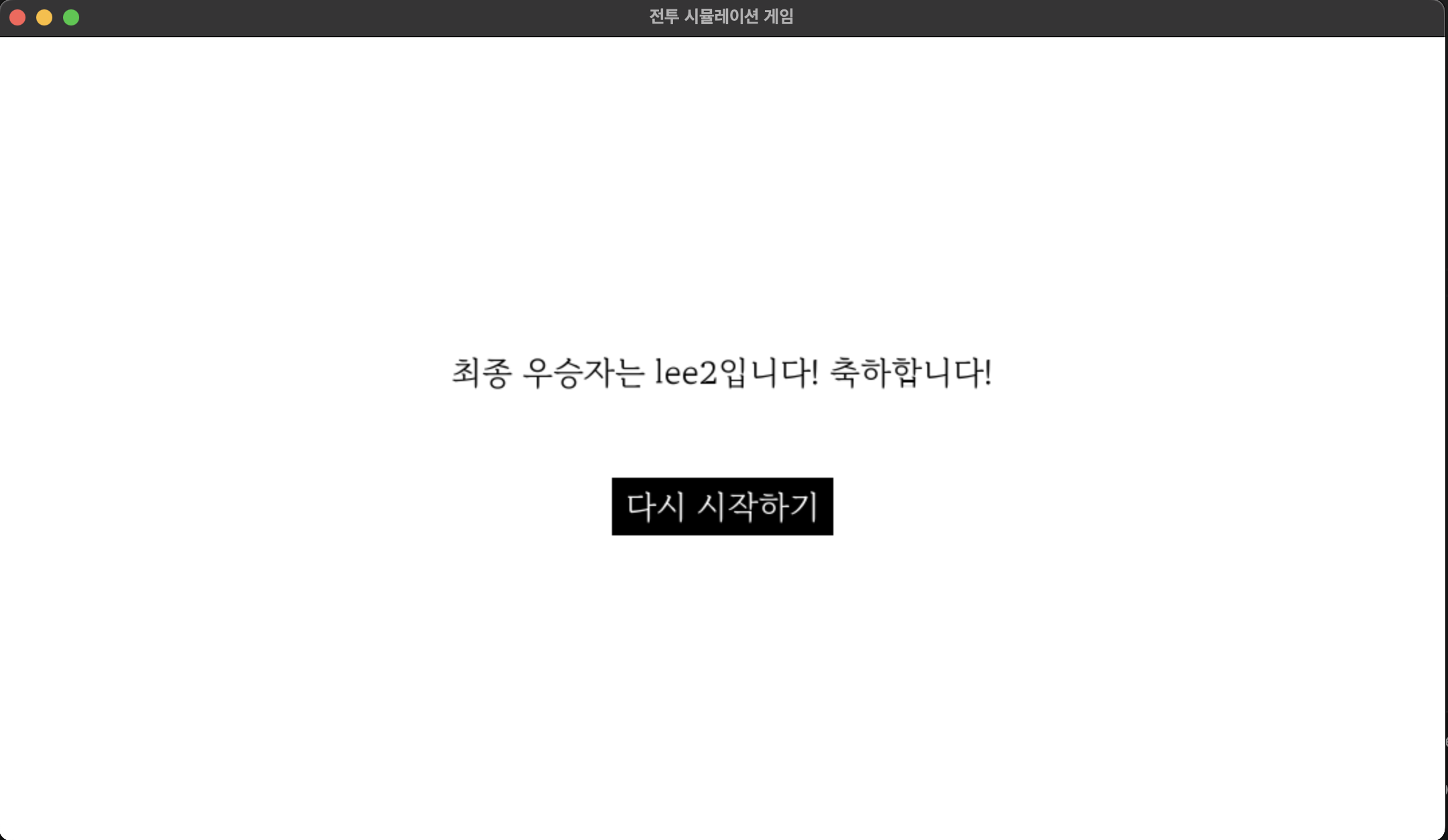 - **전투 로직을 수정**하여 참가자의 능력치가 전투 결과에 반영되도록 했습니다.