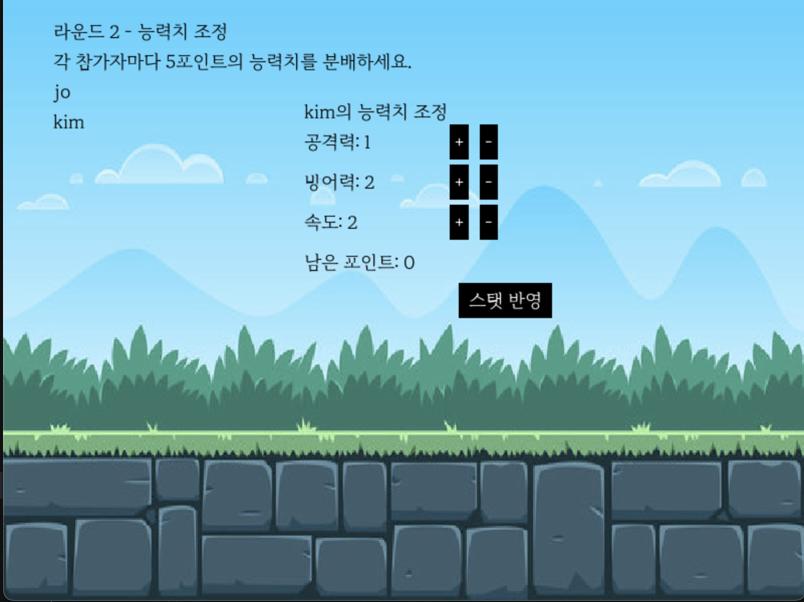 - **새로운 상태와 렌더링 함수**를 추가하여 능력치 조정 화면을 구현했습니다.