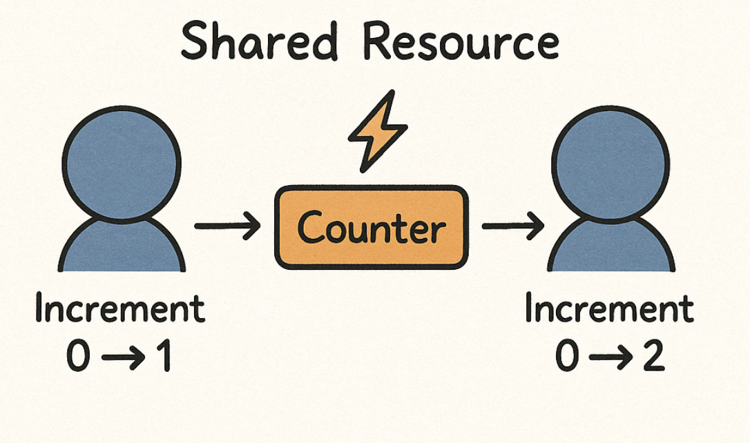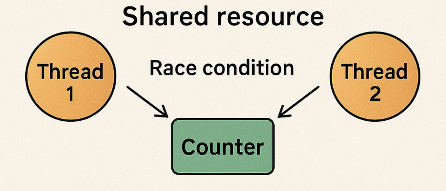 이들이 스레드 안전(Thread-Safe)하게 구성되지 않으면, 동일한 시점에 여러 스레드가 접근하여 예기치 못한 결과를 초래할 수 있다. 이를 레이스 컨디션(Race Condition)이라 부른다. 예를 들어, 0에서 시작된 전역 카운터(counter)를 각 스레드가 동시에 증가시키면, 1씩 올려야 할 값이 제대로 반영되지 않고 0→2처럼 스킵되거나, 심지어 -1 같은 이상한 값이 찍힐 수도 있다.