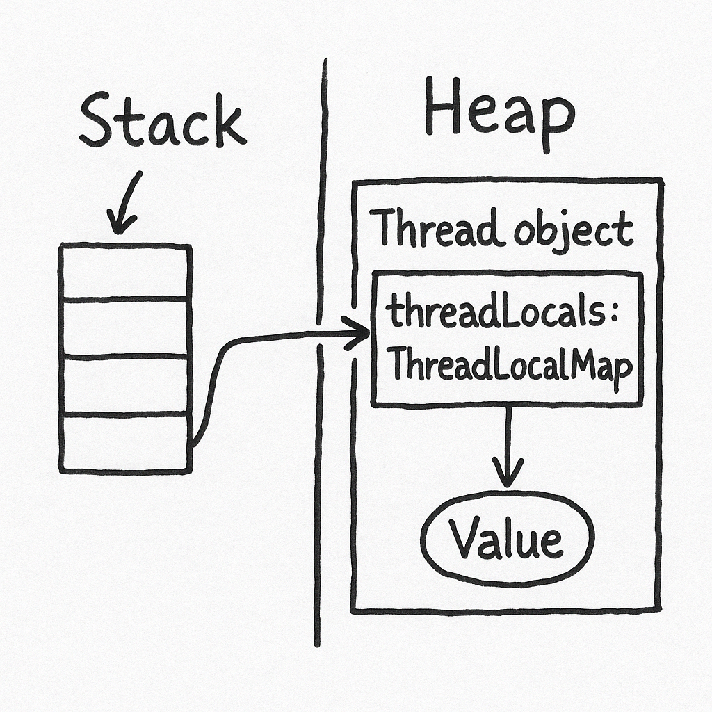 - 최상단의 ThreadLocal 박스는 “공유하지만 스레드별로 따로 저장되는 키” 역할을 한다.