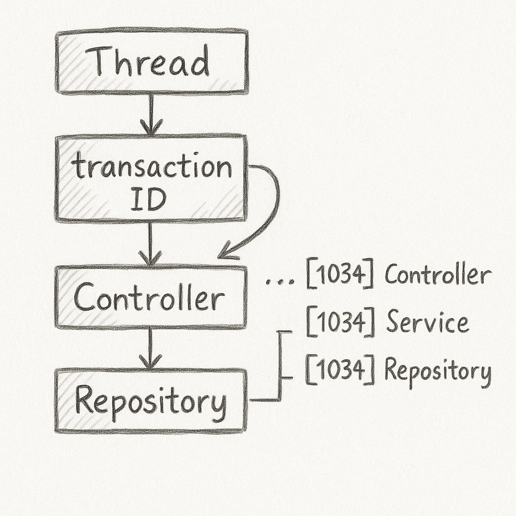 이런 시나리오에서 “계층형 로깅” 또는 “트랜잭션 ID 트레이싱”을 하면, 로그를 조금만 봐도 “이 메서드가 어디서부터 호출되었고, 어떤 로직이 예외를 일으켰는지” 등을 한눈에 파악할 수 있다. 바로 이때 ThreadLocal이 유용하게 쓰인다.